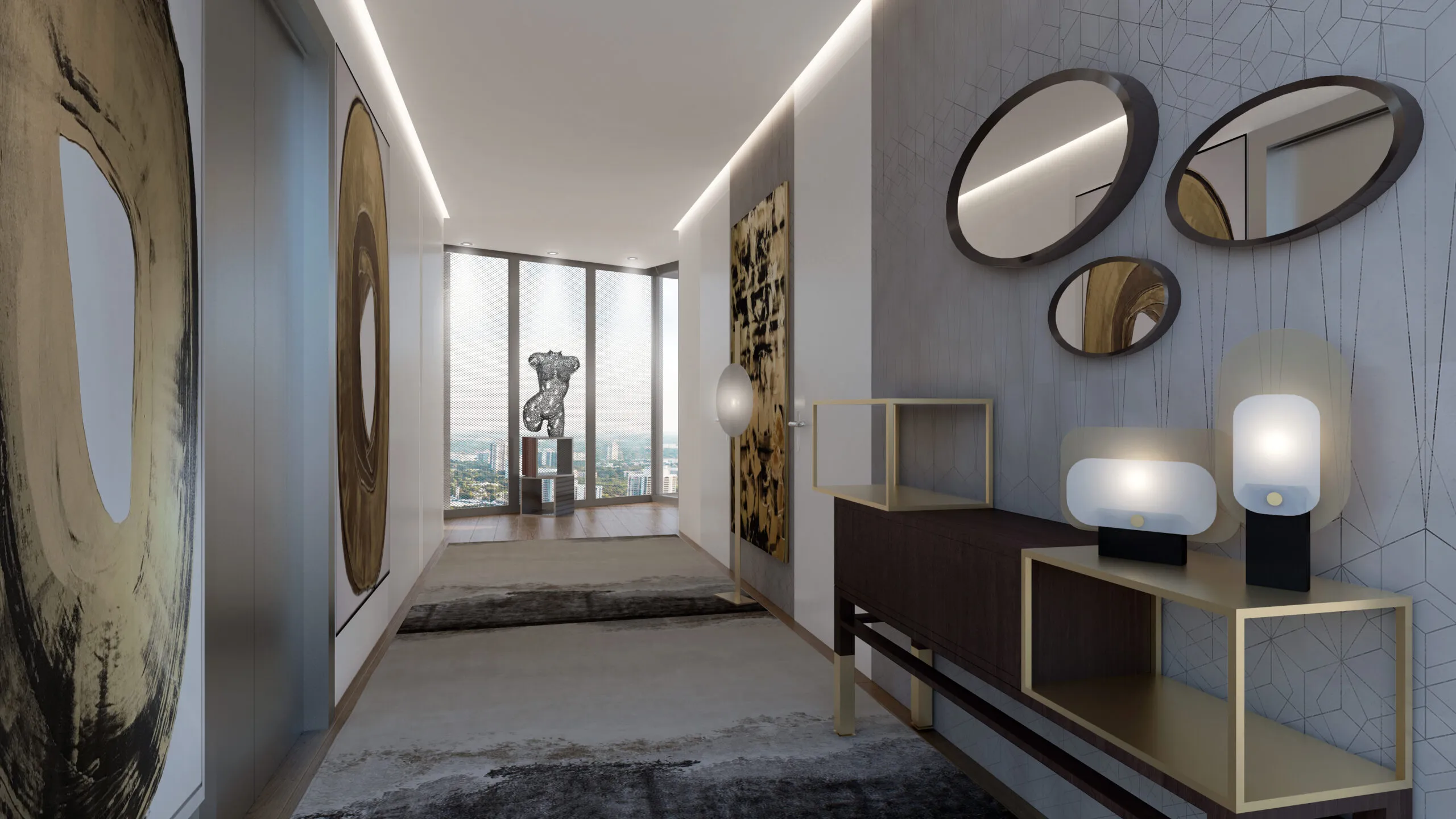 Interior designer Rita Chraibi reveals another project by designing the Penthouse at Monda Terrace. The exceptional private rooftop, complete with a pool, sun deck, hot tub, summer kitchen and bar, and a dedicated elevator, is in a league of its own. Breathtaking Downtown skyline views and Ocean breezes from 4,383SF of exterior space exemplify the Miami Lifestyle. Rita's design vision for this Penthouse boldly combines the richness of colors and elegance of motifs. She designed the Penthouse at Monad, highlighting Her "French touch," which is appreciated in places where an "art de vivre" is of the utmost importance. This residence has been designed in a very sober tone, material, and textures to allow uniformity of the volumes.